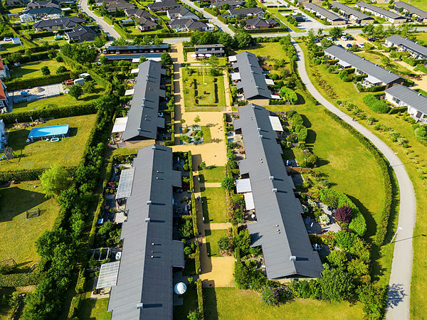 Indeholder 20 stk. almene familieboliger som tæt/lavt byggeri.